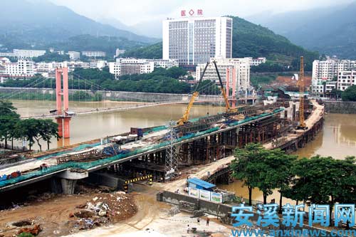 近日,記者從三安大橋項目施工組了解到,三安大橋橋梁下部結構(樁基、承臺、橋墩、橋臺)已全部完成,箱梁完成四聯(共計九聯箱梁),排洪渠完成350米(共計380米),土石方回填7萬多立方米,1標段總投資1.07億元,目前已累計完成投資5800萬元。