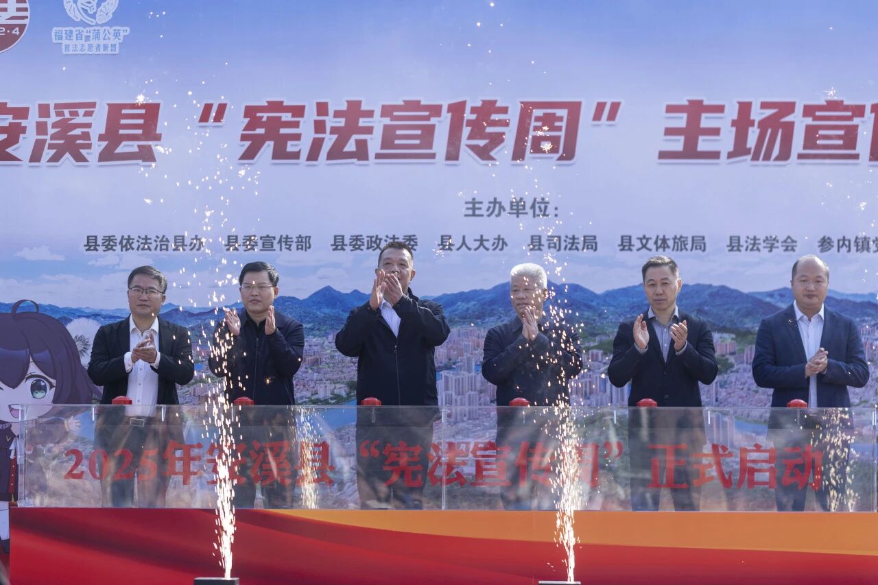 啟動儀式上,與會領導共同按下啟動按鈕,現場掌聲雷動,標志著2025年安溪縣“憲法宣傳周”系列活動全面鋪開,“憲”動茶鄉。